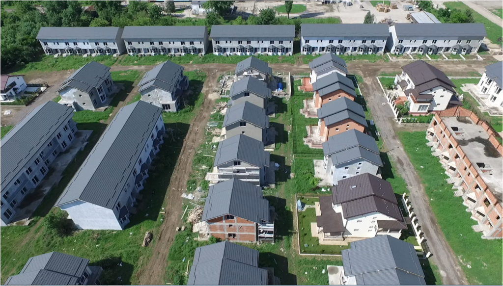 55 de case in sistem insiruit (cu doi pereti comuni)